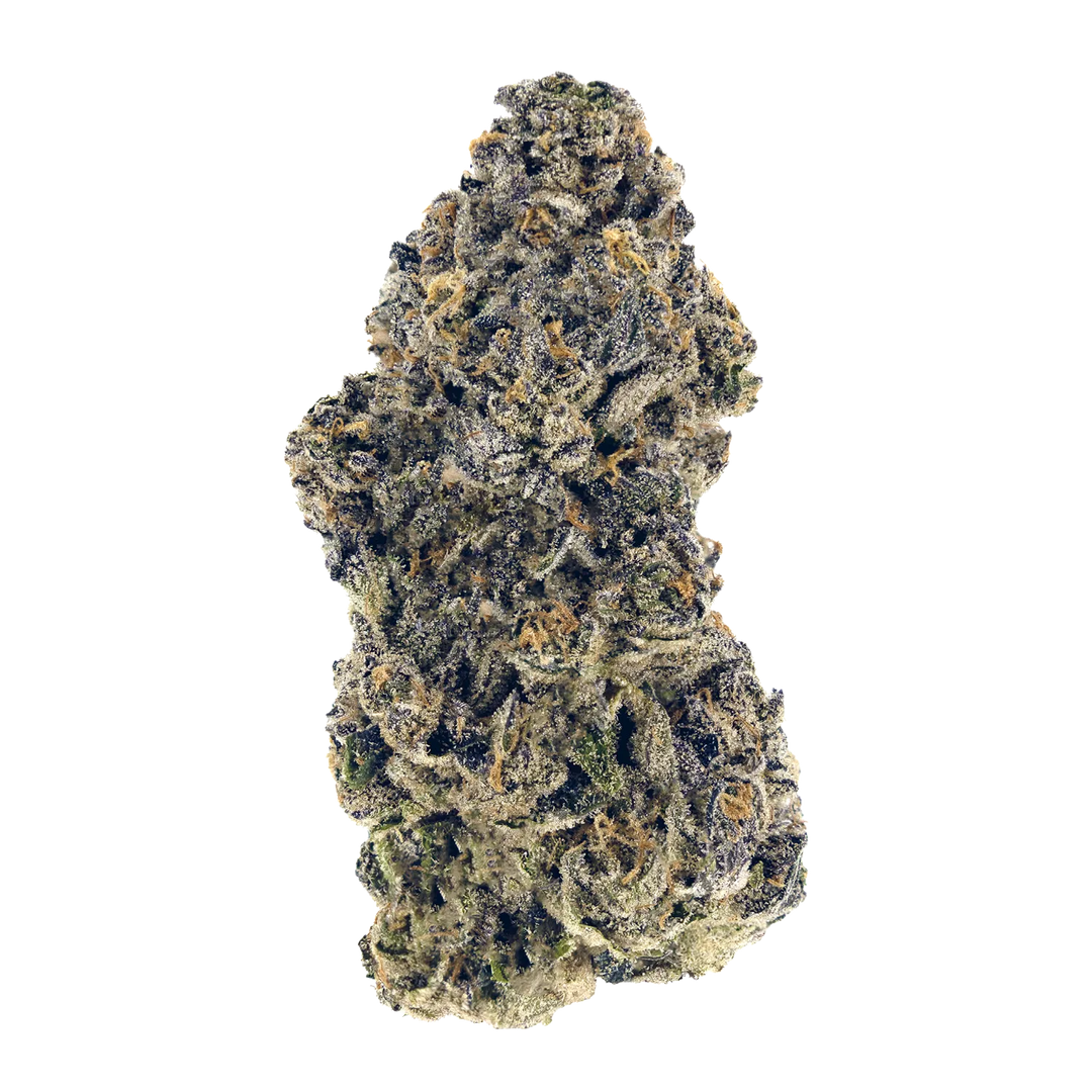 This indica-dominant cultivar is rich in terpenes, including caryophyllene, farnesene, and linalool, with notes of grape and gas. The plant’s dark, frosty buds are hand trimmed, cured for a minimum 3 weeks, and never irradiated.
