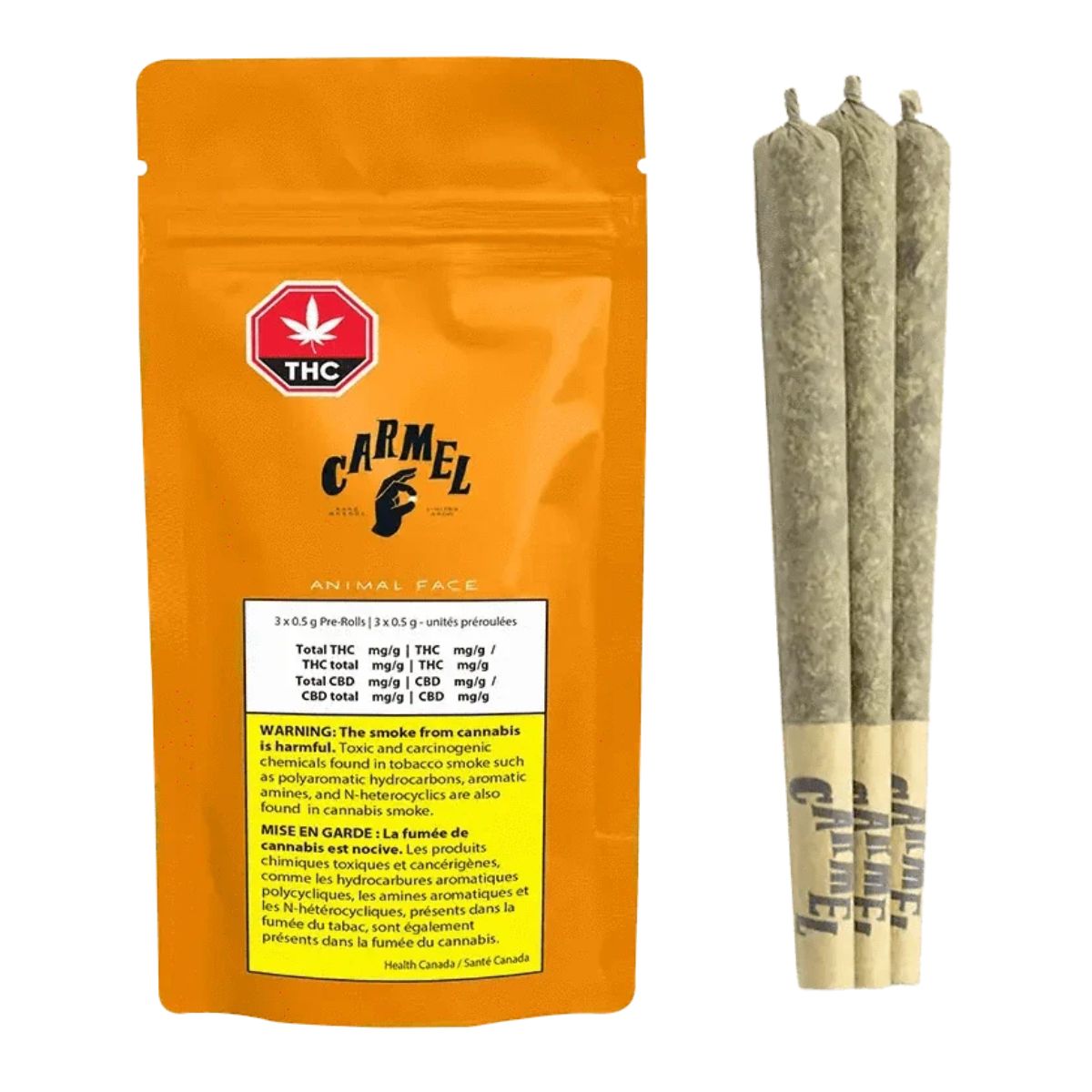 Our Animal Face pre-rolls are made with, well, Animal Face. Created by crossing the Face Off OG clone with an Animal Mints male, Animal Face is an ultra-potent and flavourful sativa-dominant hybrid.
