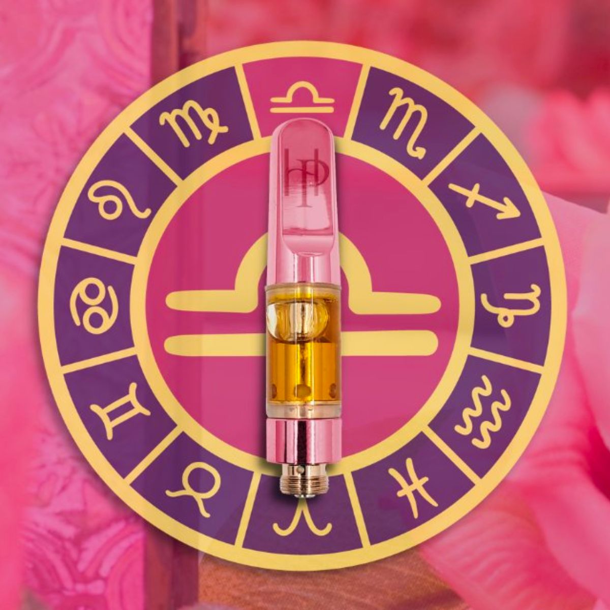 LIBRA 1:1 THC:CBD Live Resin Vape cartridges showcase high end hardware with a beautiful etched rose gold vape created for even the most powerful of astrological signs.