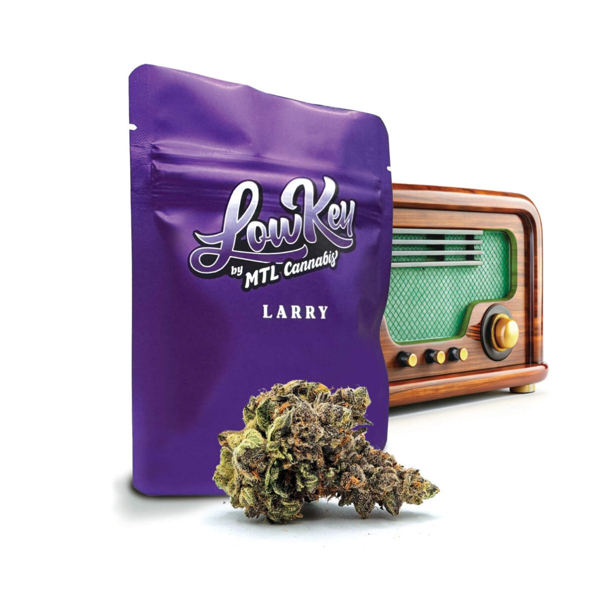 LowKey’s indica-dominant Larry is a legacy cross of Black Domina and Gelato 33. Its buds are a deep emerald green with very heavy purple undertones all coated with loads of big crystals.