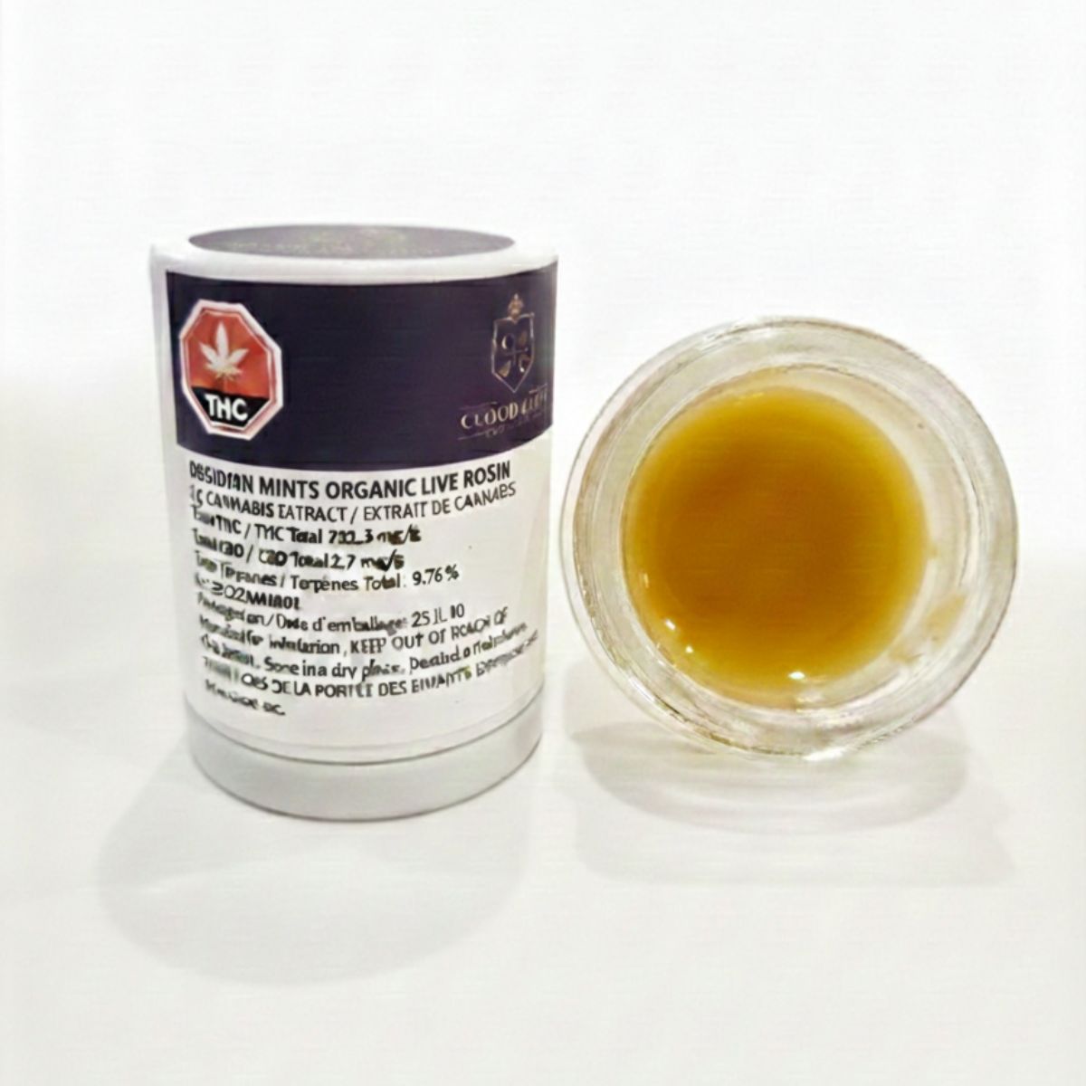 Obsidian Mints Organic Live Rosin showcases the distinctive genetics of Funky Panties crossed with Chimp Mintz, delivering a complex terpene profile that connoisseurs appreciate.