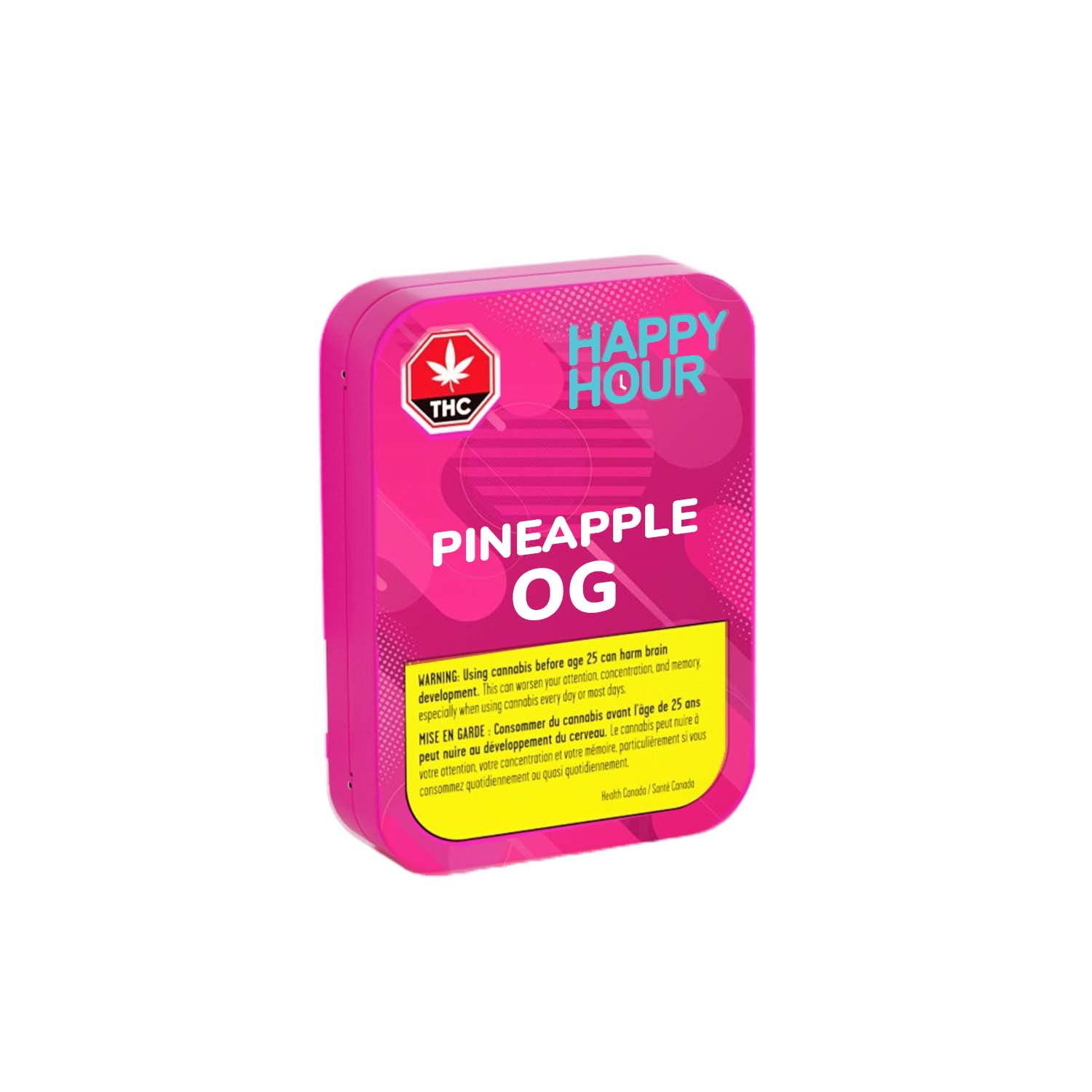 Happy Hour Pineapple OG Sativa Pre-Rolls bring West Coast legacy to your fingertips with a bold, fruit-forward twist. A sativa born from Pineapple Express x OG Kush, this cultivar blends tropical pineapple zest with earthy, classic OG undertones - a nod to its BC roots.